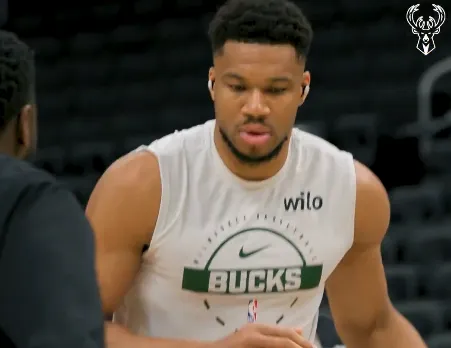 赛前,雄鹿社媒分享扬尼斯-阿德托昆博积极投入热身训练的瞬间。